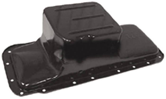 This is steel 4 quart oil pan that's painted black. It's for Pre-1980 SB Chevy 283-350 with a driver side dipstick. 4 quart capacity Made with thicker material, 2 trap doors, ... For All Chevrolet Cars and Trucks