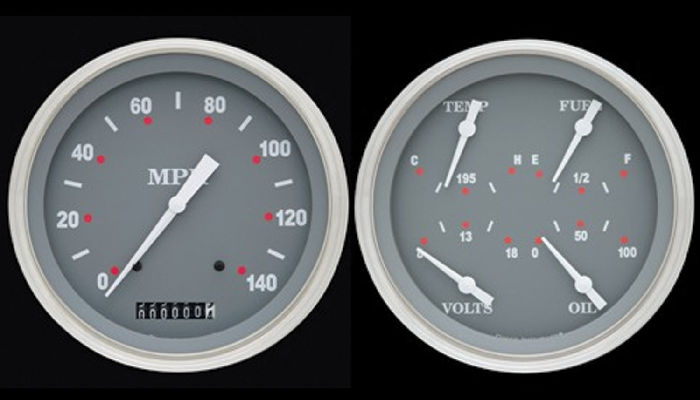 Parts -  Instrument Gauges - (2 Gauge Set) - Silver-Grey Series With Flat Lens 12v