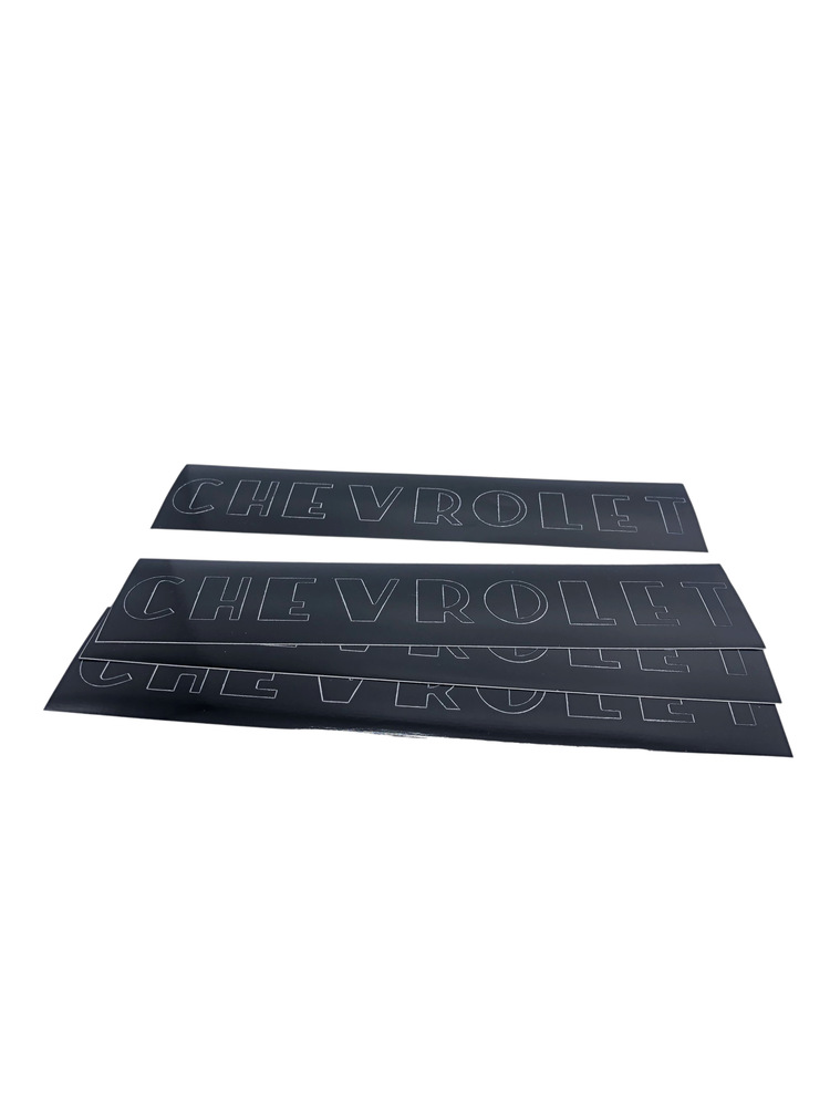 This is a decal (set of 4) for the hubcaps on a 1947-53 truck with black "Chevrolet" lettering.