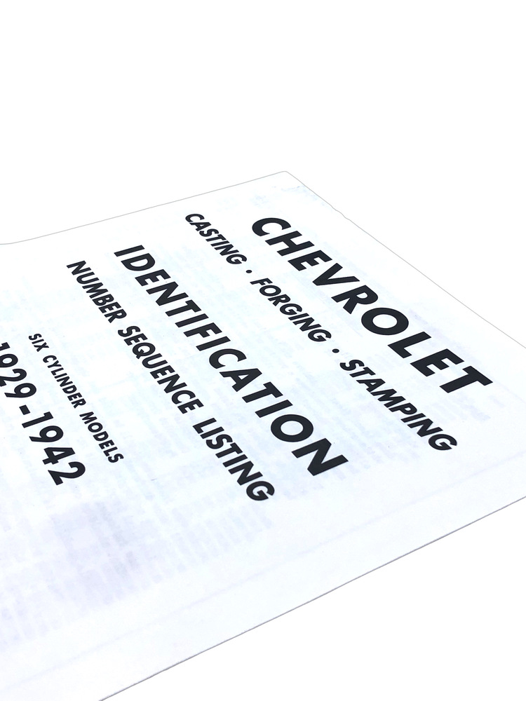 This is a casting numbers identification book that will help you find correct parts at the junkyard or swap meet. It's 12 pages in length and measures 8-1/2 inches x 11 inches.