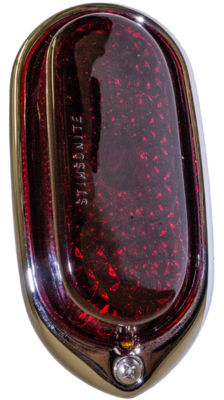 1940 Tail Light. Chrome rim, black housing. Use for left or right side (reversible lens). 12v