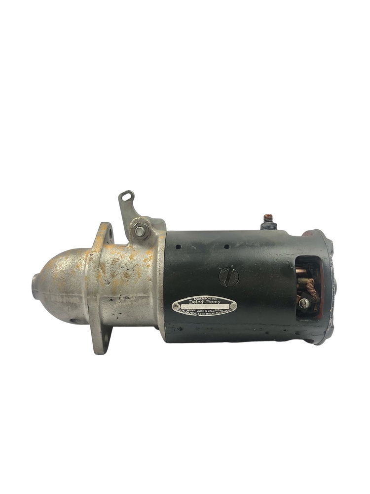 This is the rebuilt starter for passenger cars and Dubl-Duti trucks. The rebuild process includes: Fully disassembled and cleaned in parts scrubber, bead blasted and painted. Field coils and armature are tested to original specifications (original field coils and armature are by far superior to new aftermarket parts). Field coils are rewrapped if needed. Armatures that fail are "rewound" at a facility in Seattle Washington. Good armatures are turned on a lathe and retested. All starters get a new drive, new bushings, new brushes and a new leather brake washer. The brush springs are tested and replaced if they are weak. All starters also get a new band to cover the brush openings in the field case. Each starter is tested on a 6 volt tester for amp draw, field shorts and free turning amps. Hardware is replaced as needed. Use solenoid part number 1118135
