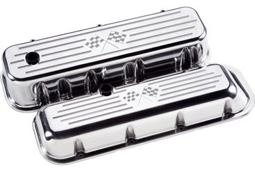 These are polished aluminum small block Chevy short valve cover flamed with hole and baffled includes grommets. Racing Power Company chrome valve covers are manufactured from ... For All Chevrolet Cars and Trucks