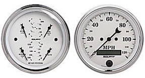 Parts -  Instrument Gauges - Auto Meter Old Tyme White, 3-3/8" Speedo Tach Combo and Quad Gauge Set